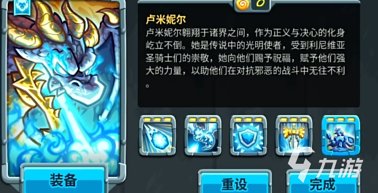 卢米尼尔也被称为冰龙,数值非常高有着强大的输出能力还带控制,他的“光辉波动”会吐息5个神圣光球,在路径上移动对敌人附加伤害,每一个光球都能附带10到14点的真实伤害,他的“反伤赐福”会赋予一位队友30%护甲的护盾,将敌人60%的伤害反射回去,他的“光明伙伴”会召唤一条光明小龙跟随15秒时间,在这个期间会帮助进攻,他的“天国裁决”会向附近最强的敌人放出圣光之剑,造成真伤并使其被眩晕数秒,他的大招会召唤出3位光之战士,短暂击晕附近的敌人,并造成32至38点的真实伤害。