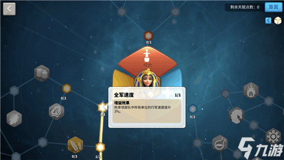 不同的天赋可以增加相应的活动效果,如埃及艳后的采集天赋,增加这项天赋可以更快更多的采集资源。阿非利加努斯的进攻效果则可以提升部队的攻击力和怒气值。