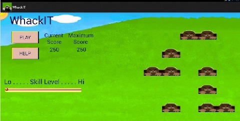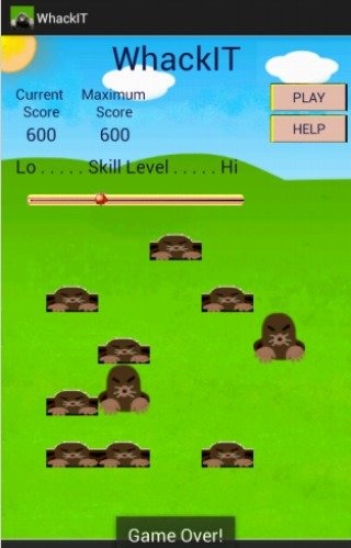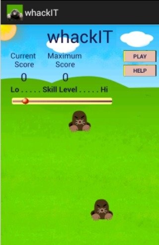 WhackIT is based on those arcade games where you have to hit a mole with a mallet when it suddenly appears. Here, you just have to touch the mole with your finger as soon as you see it.Press the PLAY button to start each new game. See how much you can score and whether you can beat your previous best.Move the ball on the SKILL LEVEL bar to the right to make the game more difficult. The moles will appear and disappear more quickly, but the rewards will be higher!