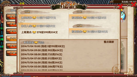 武林城主上任,全民鏖战!武林城主可每日以本武林名义对其他武林宣战,每天两次宣战,周一0点至周日20点期间内均可宣战。豪杰们在城主的带领下攻破被宣战方国库即可获得胜利,掠夺对方国库内大量官银。每位参与征战的豪杰们会获得相应参与度的征战积分,豪杰们每周的征战分红将由征战积分数量决定,所以豪杰们一定要努力杀敌哦,赢得海量积分,获得大量官银!
