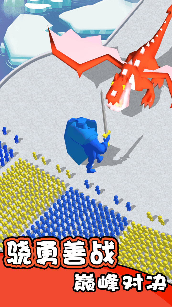 通过滑动地面创造路径,引导人群通过障碍物,并且聚集更多的人群组成身体和武器,去打败各种附有特点的关卡BOSS。