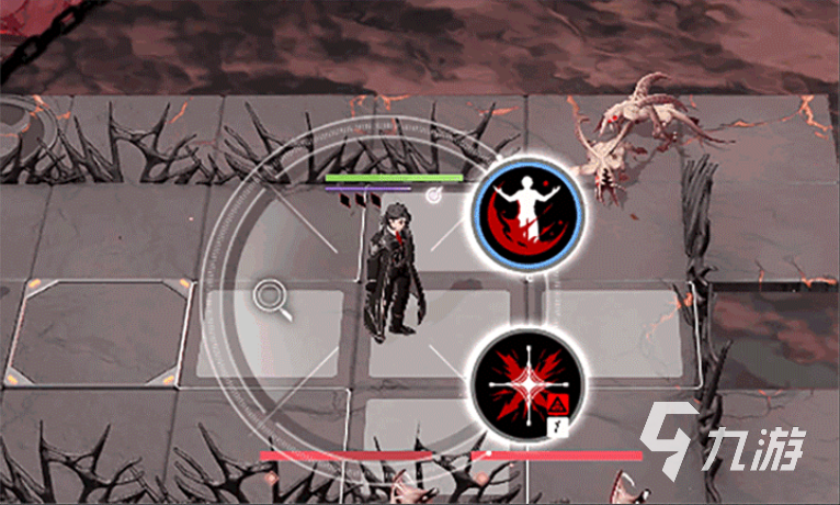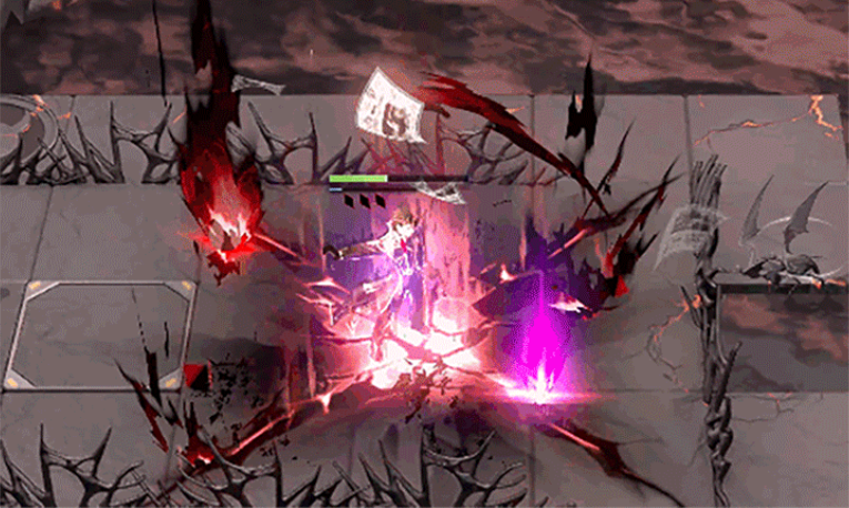 普攻“致意”,施展所学进行攻击,每段对单个敌人造成自身生命一定比例的物理伤害。必杀技“赤色礼法”,将自身血肉化为狂厄力量,需要消耗一定比例的生命值,对技能范围内所有敌人进行多段攻击,共计造成自身生命一定比例的物理伤害,以及一定的核心伤害。