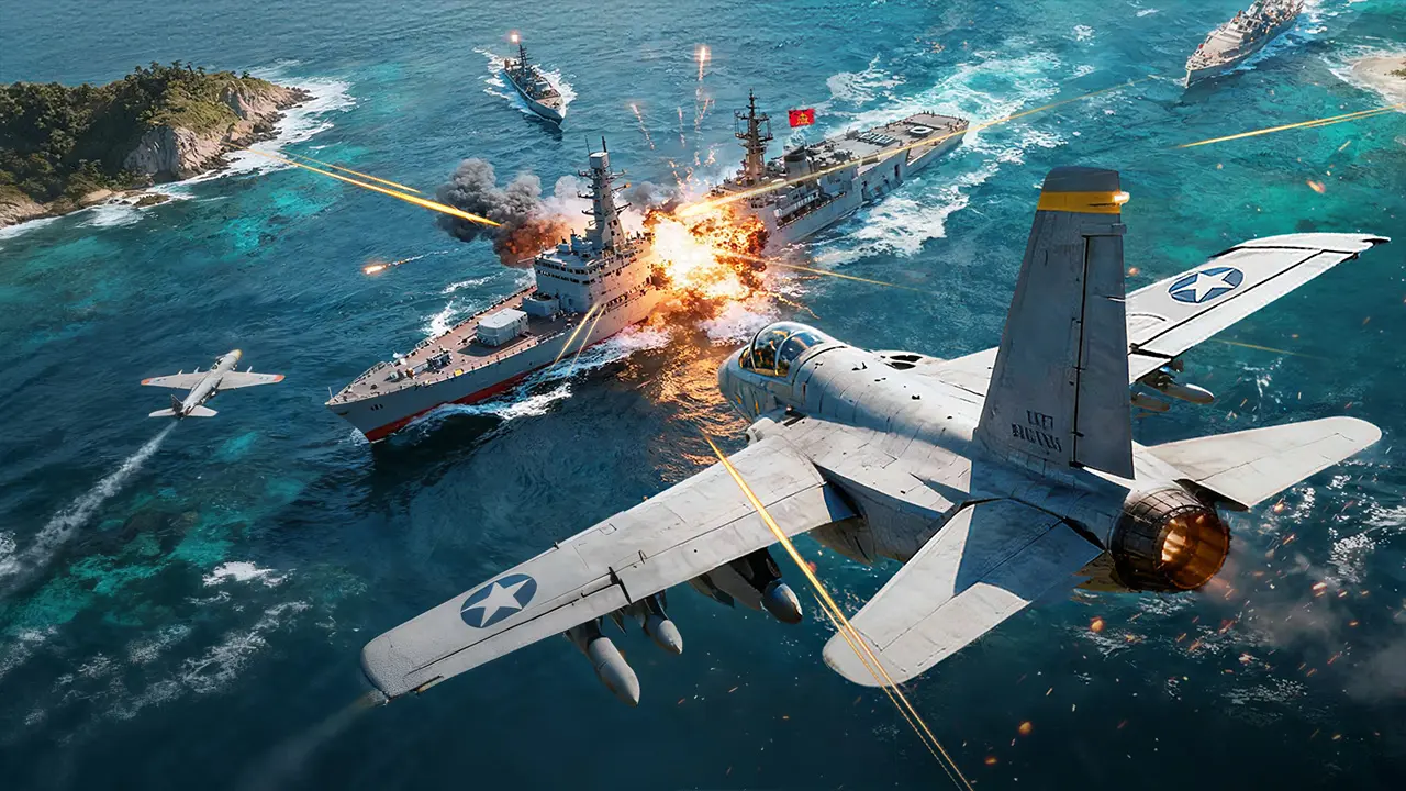 游戏内收录50+史诗级战舰,涵盖航母、潜艇、驱逐舰三大舰种,均以高精度建模还原真实细节与参数。自动火炮、防空炮、装甲、雷达等装备可自由 DIY 搭配,五大舰队队形随心切换,更能通过升级属性、解锁技能,打造适配不同战场局势的专属舰队。海空两路并进的设定更添策略空间,航母专属战机随时待命,让海战维度全面升级。