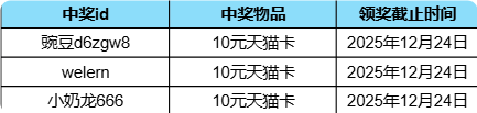 感谢各位玩家积极参与活动,以下是本期活动获奖名单: