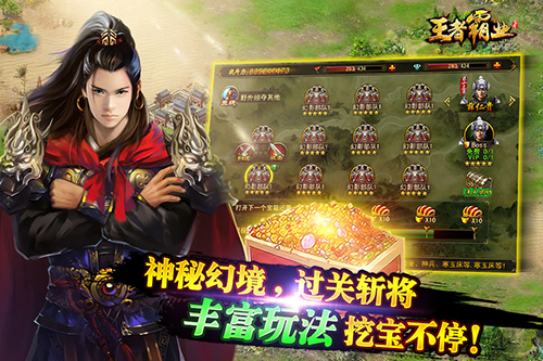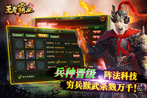 王者霸业是著名游戏公司——宝将信息科技有限公司旗下一款大型王权争霸兼美女养成策略手游。独特的历史贯穿交互题材,千年历史融合,恢弘的背景造就盛世之争,帝王的霸业,权者的野心,上位者的尊荣,一朝名就,权利与后宫尊享。