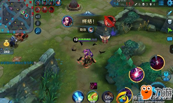 由于芈月大招的特殊性,当遇到敌方残血英雄逃到塔下准备回城时,可以利用一技能来到敌方英雄面前,并释放二技能攻击敌方英雄,同时释放自己的大招与二技能一起形成双重攻击将敌方残血英雄击杀。