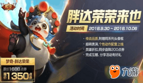 王者荣耀梦奇胖达荣荣皮肤国庆上线,9月28日每日一题为梦奇胖达荣荣传说皮肤首周折扣价为多少点券?九游小编艾米分享下王者荣耀梦奇胖达荣荣传说皮...[详情]