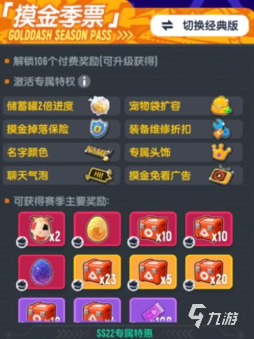 上面这些便是香肠派对ss22赛季季票介绍。这次的赛季季票不管是哪一个本身所给的物资都是很不错的。玩家们可以根据自身所缺的来决定到底选择哪个季票,也可以考虑升级豪华季票全部都拿到手。