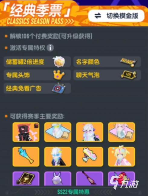 大家购入的是经典季票的话,那么可以获取到储蓄罐2倍进度,以及专属头饰,名字颜色,聊天气泡等奖励。除此以外还有着角色套装等奖励,这次的套装从目前来看整体还是非常可爱的。