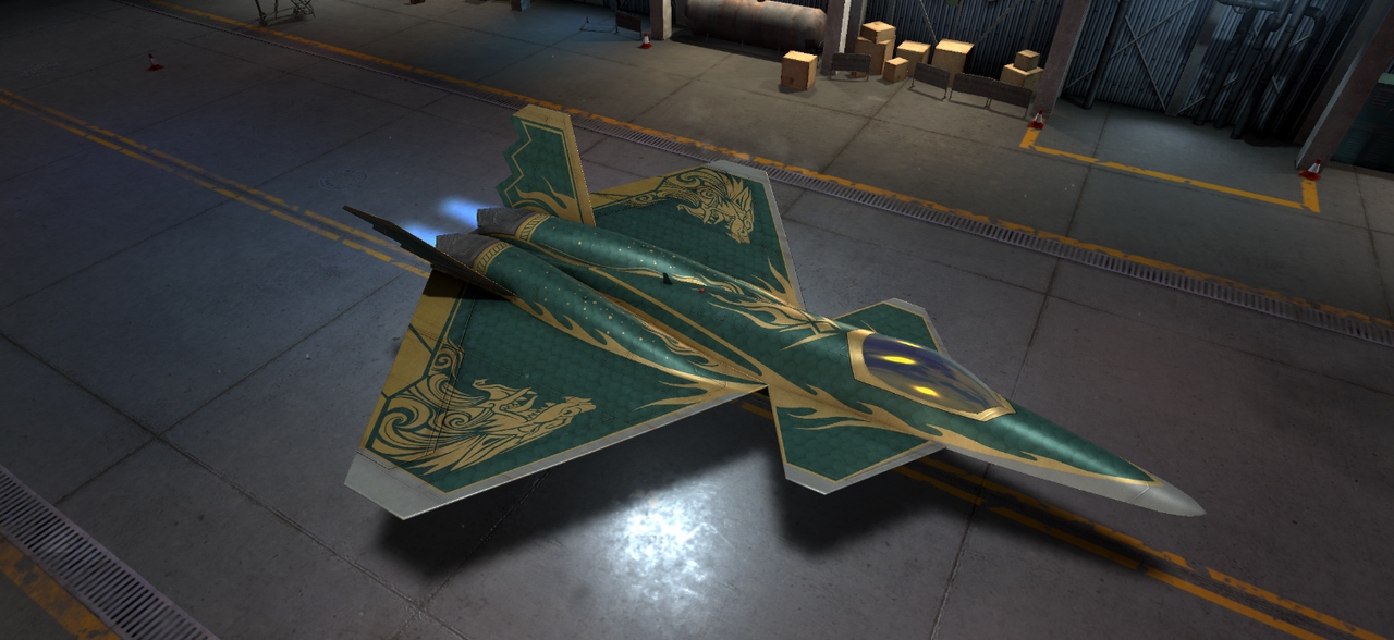 从机身的狮首盘踞,到蒙皮的狮鬃装甲,再到机翼的狮翼延展与尾翼的狮爪锋芒,“暗夜金狮” 涂装将战机打造成了一架身披强化装甲的空中狮威利器。墨玉绿的厚重防护感与鎏金的华贵威慑力暴力融合,让它在空域中无论是静止停泊还是高速机动,都能释放出 “狮甲御空” 的视觉压迫感,每一寸涂装都是对 “装甲制空” 的具象化诠释。
