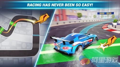 从视频的演示来看,玩家控制的赛车都是沿着赛道上的“蓝线”极速狂飙。本作的名字中“draw”的含义大抵如此,玩家需要先在赛道上绘制赛车的行进路线,比赛正式开始后,赛车将按照玩家绘制的行进路线和对手对飙。当然,赛车在赛道上行进的过程中玩家也不是无事可做。玩家需要恰到好处的时机触屏,来实现赛车的漂移。