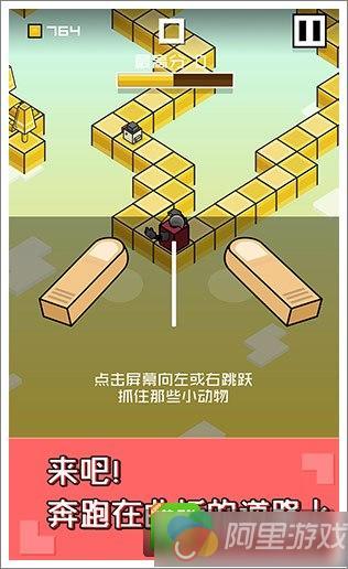 游戏的玩法极其“简单粗暴”,只需两根手指在屏幕上左右点击,指挥角色向左或向右移动即可前行,抓获沿途的小动物获得分数,手速够快一根手指又何妨!角色一路前行,速度从慢到快逐渐提速,达到一定速度后可开启暴走模式,一定时间还可获得免费金币,速度与激情并存,暴走与金币齐飞。