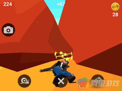 《菲利骑行记(Faily Rider)》的玩法与前作相比没有任何的区别,只不过就是将汽车换成了摩托车而已,游戏场景依然是那个陡峭的山坡,而玩家们需要做的就是控制摩托车向左右两侧进行回避,躲开道路中的树木与岩石,不过游戏在下滑的过程中增加了很多的阻力,所以并不是你向让摩托车向右它就会向右的,都需要很大的提前量才行,可以说本作的难度依然保持了《菲利刹车记(Faily Brakes)》中的水准,还是比较虐心的。