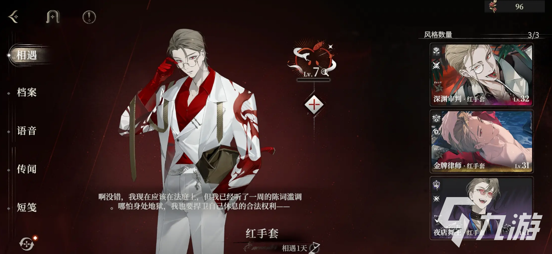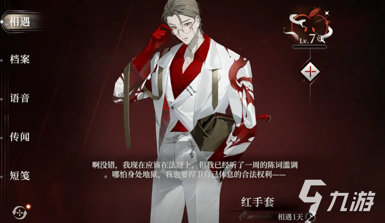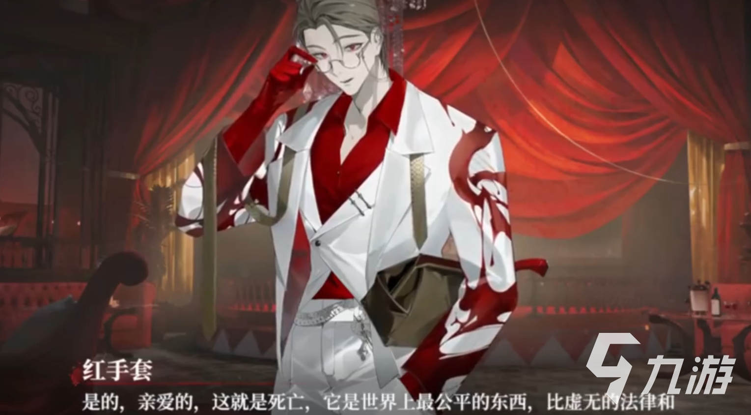 红手套在游戏中的形象是一个高挑的男人,服装方面是穿西装为主,穿衣风格比较正经,但是实际上是一个很反差的角色,比较喜欢刺激,在剧情的推动方面也是比较大胆,喜欢反差的玩家可以选择攻略这个角色哦。
