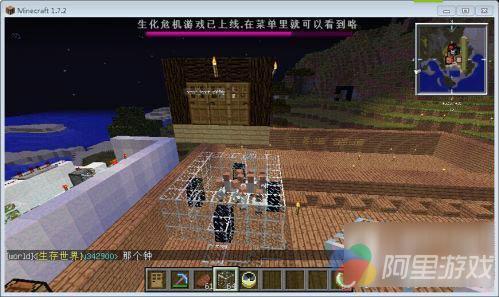 交易场也不算难,如图显示,这样放置容纳所,当用矿车运输村民进入格子时,封好,然后打掉矿车,村民就监禁PIAY啦~