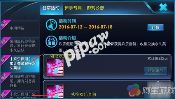 欢乐音符的获得方法有很多,第一个是每日登陆,每天登陆都可以获得欢乐音符,分别是5、5、5、10、10、10、15个,总共可以获得60个。