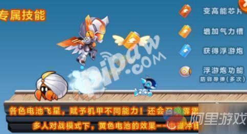 而机甲03的技能则花俏多了,可以召唤各色电池飞星,赋予机甲不同能力。还会召唤霹雳狗助跑