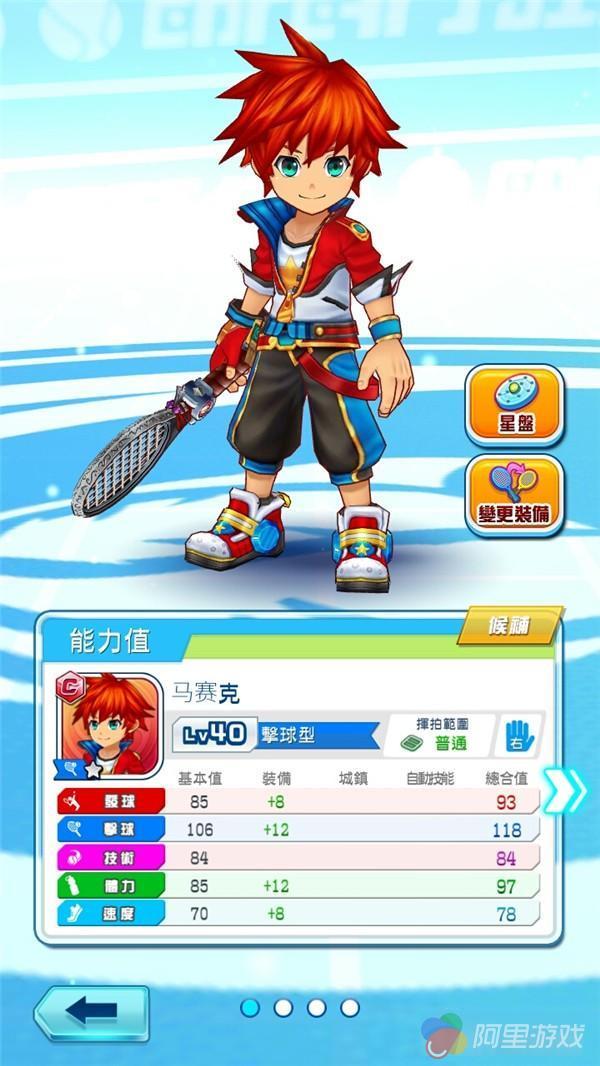 装备方面则是分为球拍与球鞋两类,不同装备对5项能力的加成数值也有很大变化。