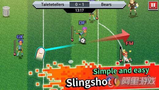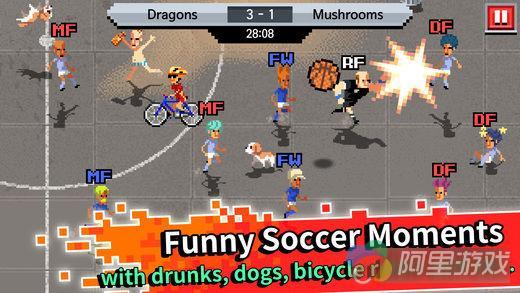 《Dumber League》采用了一套半即时制玩法,还算简单。玩家在比赛前可以选择阵容,而在比赛开始后,我们最主要的操作就是决定队员踢球的方向。每当有球员接触足球,比赛就会进入踢球环节,而一旦足球被大脚踢出,球员就会朝着足球奔跑并相互冲撞,营造出一种很热血也很无厘头的赛场氛围。