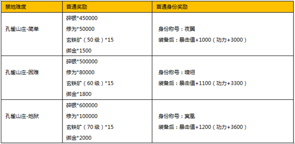 1.玩家在等级达到20级后,即可参与“禁地”玩法。本活动获奖名单以游戏内“孔雀山庄”首杀界面显示为准。