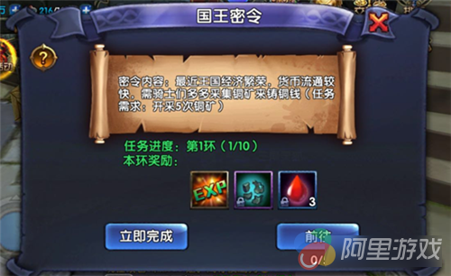 1.国王密令:完成密令任务后,获得任务奖励,其中就有大量符文碎片。