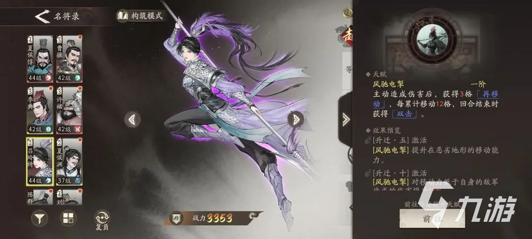 吕玲绮是6元首充可获得的武将,在极端条件下搭配合适武将,在满怒状态下,直接移动到15格开外,尤其逃脱关卡中可将作用发挥到极致。在战场中都是第一个冲入阵中的,凭借技能优势能很轻松的穿插到敌人后方,优缺点比较明显的,拥有高机动性,不过防御力不出众,不适合放在第一线抗伤害。初始比较推荐的技能“奔袭”,攻击单个敌军造成物攻120%伤害,攻击前每移动一格,伤害能提高4%,最多提高20%。