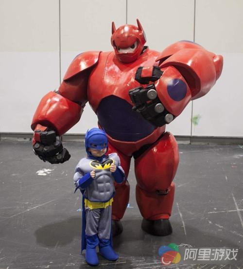 下面这幅图,是一位小蝙蝠侠因为见到他的偶像大白而激动不已。这个巨大的人物形象虽然不是用3D打印技术完成,但其制作材料却是能够在3D打印机上使用的塑料,泡沫等。