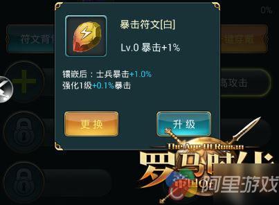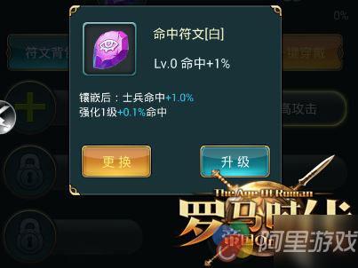 古罗马是个等级森严的社会,因此哪怕是符文,也是分等级的。不管是哪一种属性的符文,都有三种等级:普通符文、中级符文和高级符文。而且这不同等级的符 文,效果也当然有所区别。因此虽然不同等级的符文都可以强化,但强化后增幅有所不同:普通符文初始属性+1%,每强化一级 +0.1%;中级符文初始属性+3%,每强化一级+0.3%;高级符文初始属性+10%,每强化一级+1%。
