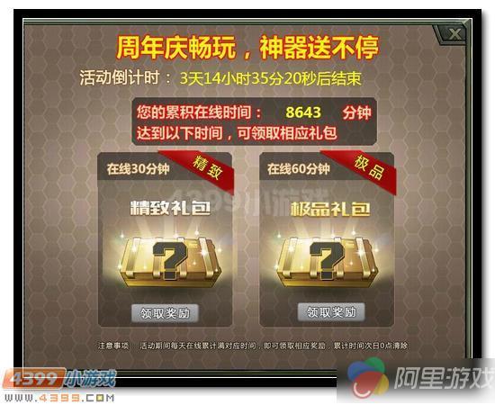 【活动说明】:活动期间,每日在线累计满对应时间,即可领取相应奖励,累计时间次日0点清除。
