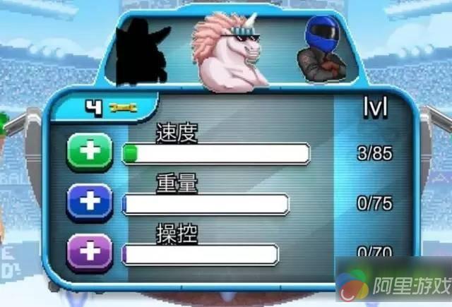 在《DA!Sports》中,每辆赛车都有擅长的领域,例如拖拉机重量优势明显,独角兽赛车擅长速度等,而这些都具象化到了赛车属性上,每辆车都有速度、重量、操控三个属性条,并且在初始阶段各个机车的擅长属性最大数值要高于其他属性,玩家对应的培养会将这一优势最大化。