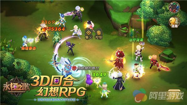 《永恒之歌》的战斗上保留了传统回合游戏的精髓,并以此为基础进行了优化,普通技能自动释放,必杀技手动释放。虽说战斗简约,却不简单。打断,控制,集火一个也不少,必杀技的释放时机很大程度上决定了战斗的走向。游戏引入了元素相克系统,并且玩家可以在四种元素之间随意切换,更大程度增加了战斗乐趣和体验。这些战斗体验在组队作战时变得尤为重要。