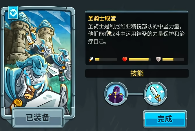 第二个技能则是召唤一只战鹰对敌人进行攻击,攻击力从目前来看并不算是很高。第二个介绍的是圣骑士殿堂,这个在之前的作品里面也有出现过。他们是属于兵种性质的阻拦防御塔。大家在第二关的时候便会自动解锁这个防御塔,同时它也是前中期玩家们使用比较多的一个类型。一般它会召唤三个士兵出来来阻拦敌人,士兵的攻击力不是很高,血量比较高。用到阻挡和拖延时间是非常适合的。