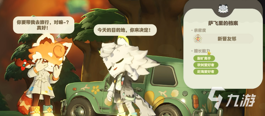 如果玩家在初始星球时选择的是夏禾星球的话,后续想要结识萨飞里的话,只能通过星海旅行了,这个玩法是让玩家前往不同的星屿进行探索,在探索时就有机会解锁不同的npc,小编建议玩家们可以结识后通过赠送一些小礼物先建立一点等级的好高度,以便后续探索时可以携带他们一起探索。萨飞里在探索上主要有挖矿、钓鱼、砍树的加成。