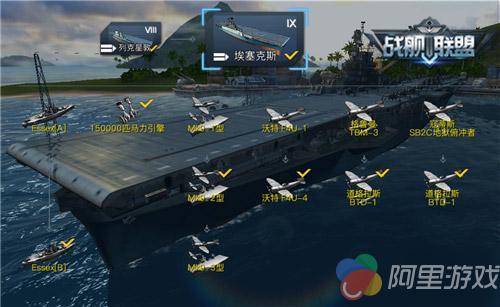 《战舰联盟》除了强调航母战斗之外,更加注重舰船配件的研发和选择。包括舰型、甲板、舰载机在内,玩家可以根据战术灵活配置和组合。例如对舰载机搭载类型的选择,可以根据队友阵容灵活搭配。