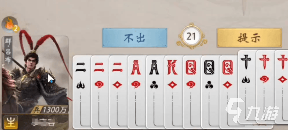 吕布的“无双”可以在自己不出,或者被压牌达到6次的时候,获得场上所有的JQK。