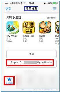1、打开 iPhone 的 App Store 以后,先点击左下角的“精品推荐”选项,用手指向上扫动找到自己的 Apple ID,点击它,如图所示。