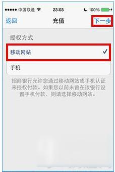 6、在选择付款方式页面里,可以选择“手机或移动网站”,这里以移动网站为例, 点击“下一步”继续,如图所示