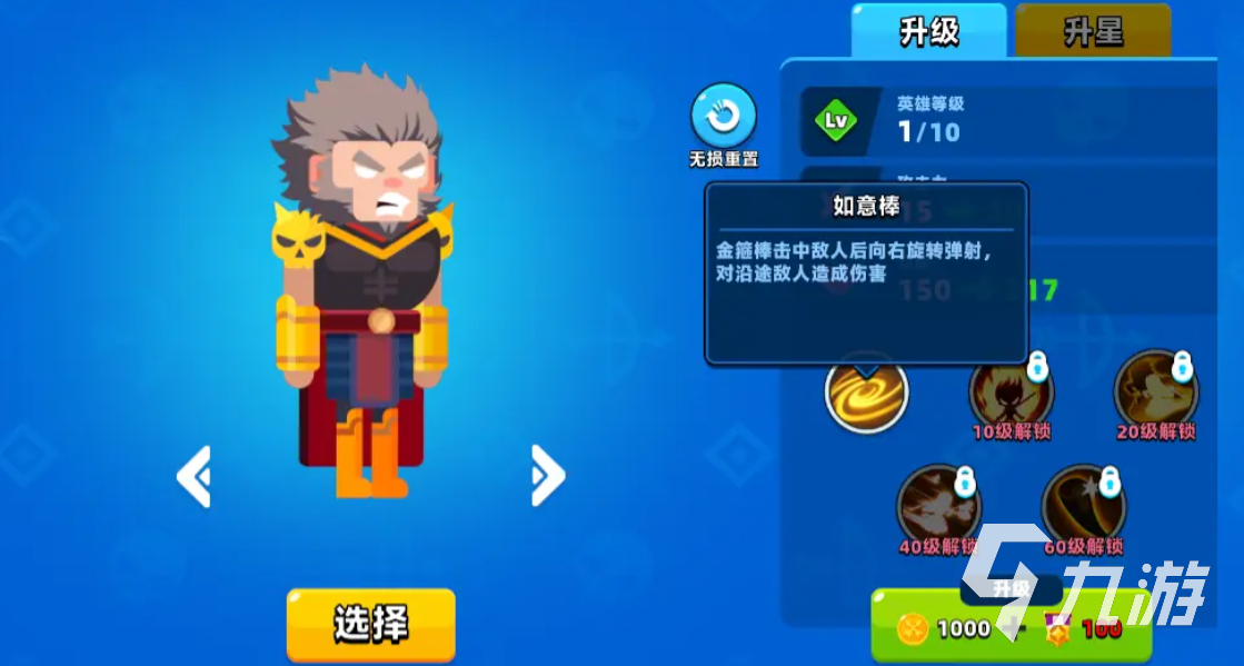 悟空的攻击力和爆发力比较高,不管是推图PK都很好用,他的等级技是在用金箍棒命中敌人后,向着后方旋转弹射,对沿途碰触到的敌人造成伤害,他的觉醒技会使用巨大的金箍棒,对敌人连续下劈,对首领造成额外伤害。