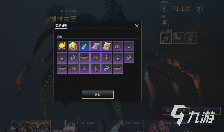 第二个是随机副本,一般是4人组队参与,包含了佣兵系统的自动匹配,2次基础奖励,额外消耗道具能获取3次;这里主要有首饰、武器装备,首饰和武器强化石,金币,设计图,精英副本券,坐骑这些。