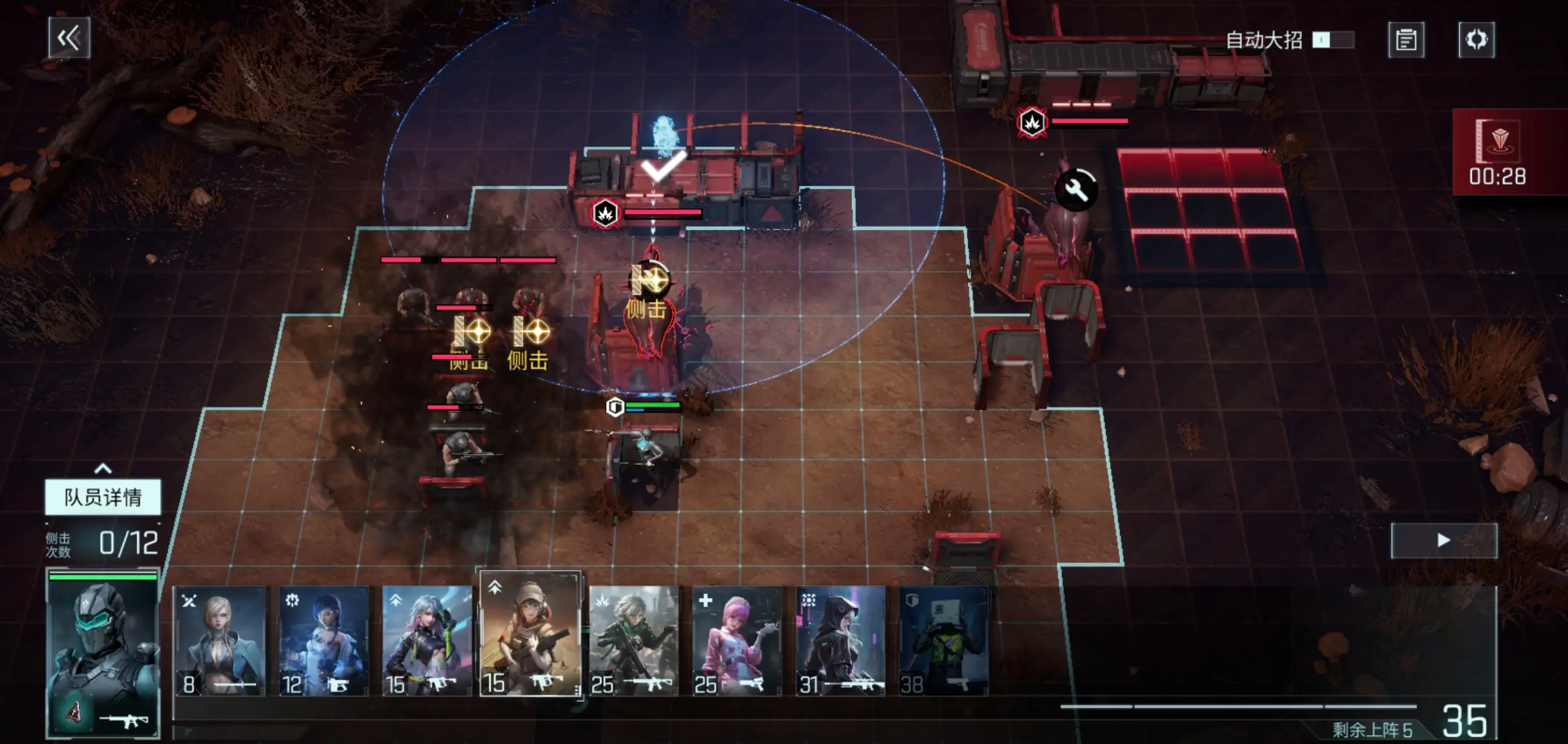 在战场中,掩体前方约90°的扇形区域具备防御功能,能有效阻挡敌方火力并减少被命中概率。若从正面强行进攻,不仅输出效率低,还容易遭受大量伤害。因此,推荐采用绕后或侧面突袭的方式,在敌人掩体的侧后方进行部署,从而实现高效打击,这正是侧击战术的核心思路。