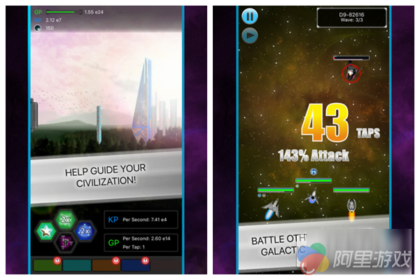 这个部分很容易让人想起 2014 年的休闲游戏《Tap Titans(点爆巨人)》,凭借单纯却中毒性很强的点击玩法不断升级、成倍地升级,然后在数据上进行堆叠,让玩家无法停止地点击下去。