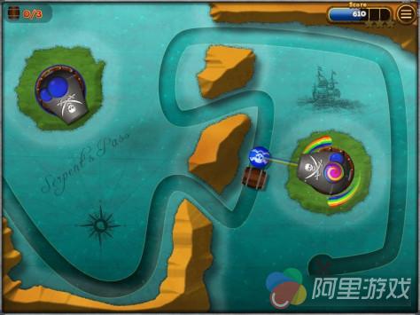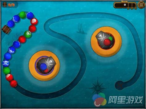 《黑胡子的爆破(Blackbeard's Blast)》的画面采用2D横版屏幕呈现,画面整体的精致程度让我有些惊讶,至少要比目前市面中的大部分祖玛游戏都要好。而且本作在很多细节上的处理也非常到位,就比如它在每个珠子上都绘制了象征着海盗的骷髅头,不但如此,每种颜色珠子上的骷髅头还都有着不同的造型,代表草帽海贼团啦、黑胡子海贼团啦等等(这句是我YY的,大家莫当真)…