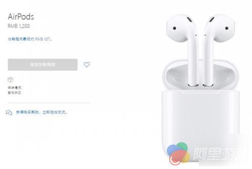 目前,AirPods在国内苹果官网上的价格为1288元人民币。