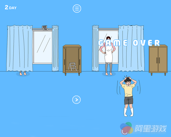 虽然我们的游戏目标很简单,但是想把3DS给找出来还是很麻烦的。比如妈妈会躲在窗帘后面,如果你掀开窗帘,那肯定就会被妈妈给发现,立马GAME OVER!而我们需要借助场景中柜子里的梯子,打开右边的窗帘拿到游戏机。