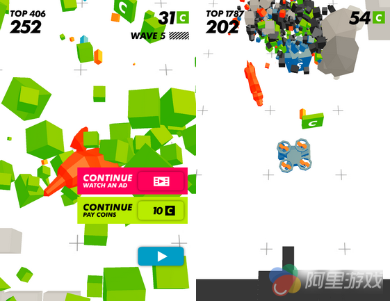 至于操作部分,玩家朋友们完全不用担心,由于角色始终都处于开启火力的状态,因此这一路上我们只需要控制自己的走位就可以了,而走位方面,上下左右四个方向的滑动屏幕就能轻松搞定。当然,我们还可以用上文介绍的货币C兑换我们喜欢的角色,可以兑换的角色一共有三种,而每个角色都拥有不同的攻击频率和范围,但是也只有3次的使用机会,如果次数超过,那么玩家只能够换回基础人物或者继续用硬币兑换。小编个人比较喜欢类似无人机的角色3,毕竟攻击范围和频率都比较不错。