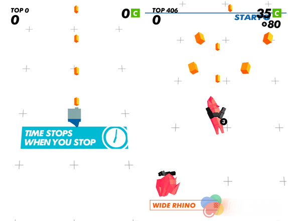 再加上游戏是无尽模式,这样就让时间显得不那么重要,得分的关键还是在于精准把握行动节奏。但是在停下来思考下一步行动的时候还是要注意时间,因为游戏开始后玩家身后的路面就会开始崩塌,要是在一个地方停留太久的话会有什么后果,大家都清楚。
