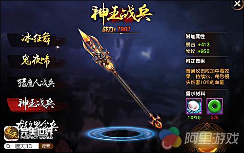 神兵的外观可被改变,装备上后,除了增强角色属性外,在普通攻击时会附带特殊效果,给敌人造成巨大的伤害。