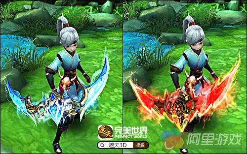 天妖御姐的法珠类神兵则更显奢华,类似珠宝的点缀加上冰火两种光束的环绕加持,使法珠更添华贵之气。