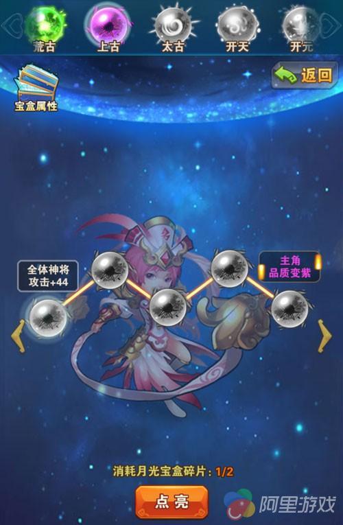 那么,这时候应该有小伙伴们举手提问:怎样点亮月光宝盒?月光宝盒的点亮需要消耗月光宝盒碎片。玩家获得碎片的途径有:主线副本与仙界副本,小编友情提醒,只有首次通关,方可获得月光宝盒碎片哦。由于仙界副本每天只能攻打5次,所以每天一定要记得去打哦!值得一提的是,仙界副本中的BOSS关卡也会掉落大量的月光宝盒碎片,难度也颇具挑战,但是不消耗挑战的次数,一星通关即可获得所有奖励,所以小伙伴们尽管一试哦。