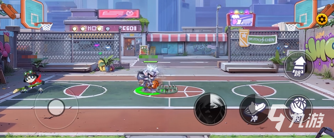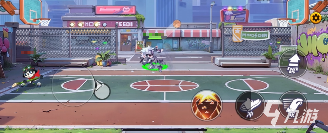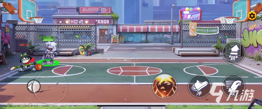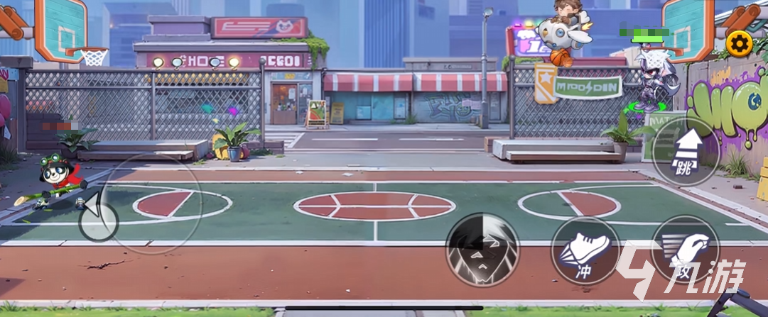 如果他还未拥有大招能量,整体控制力比较弱,前15秒,就要尽可能防止对手突破战线,比较好的方式,就是把对手控制在中场位置,或者篮板的位置,如果不小心被控制,也可以通过闪避的无敌效果躲避部分招式,等大招好了,就能进行三四次投球。